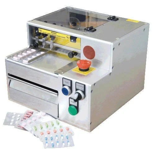 The Press-Out Automatic Deblistering Machine is the auxiliary equipment of Blister Packing Machine. These machines are designed to empty tablets and capsules from the rejected blister packs. The mechanism is adjustable, for different blister formats. Change parts are required only for the automatic model.